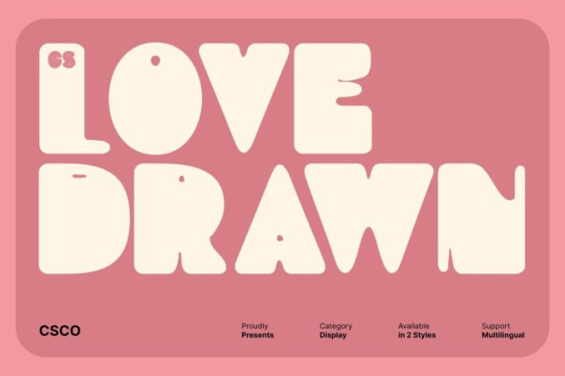 CS Love Drawn Font This is a bold and chunky display font designed to make every word feel strong, expressive, and full of personality. Its thick, blocky letterforms create an eye-catching and modern aesthetic, giving your designs a confident presence right from the start.