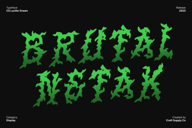 CS Lucifer Drawn Font This is a brutal black metal display font crafted for designs that demand intensity and unapologetic energy. Its jagged spikes, razor-sharp forms, and chaotic structure embody the raw visual power of extreme music culture. Every letter screams attitude, making this font perfect for projects that thrive on darkness, rebellion, and high-impact visuals.