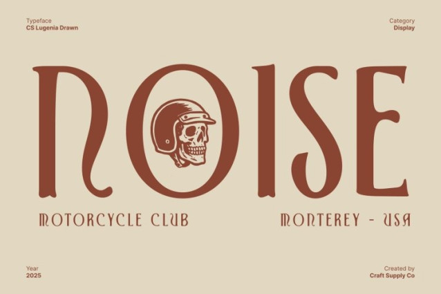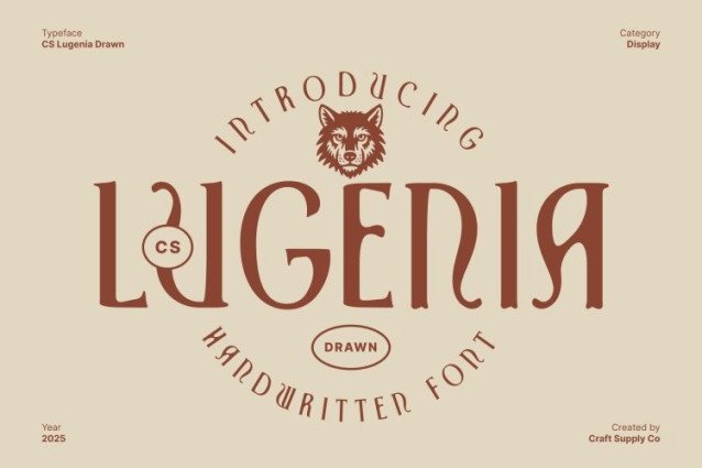 CS Lugenia Drawn Font This font is a classic sans serif font enriched with striking Tuscan-inspired shapes and a drawn character. Its clean structure blends seamlessly with unique contours, bringing together tradition and modern energy in one expressive typeface. The handcrafted look gives each letter personality, making the font stand out with confidence and artistic flair.
