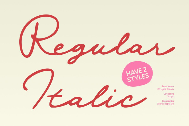 This is a demo font and is free for personal use only. For commercial use, a license must be purchased. Link to purchase the full version and commercial license: https://craftsupply.co/product/cs-lydia-drawn/