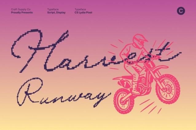 CS Lydia Pixel Font This is a handwritten script font that merges timeless Mediterranean elegance with subtle pixel detailing. Its smooth, flowing curves and refined letterforms capture natural sophistication, while the pixel accents add a modern, digital-friendly touch perfect for designs that want romance and style in equal measure.