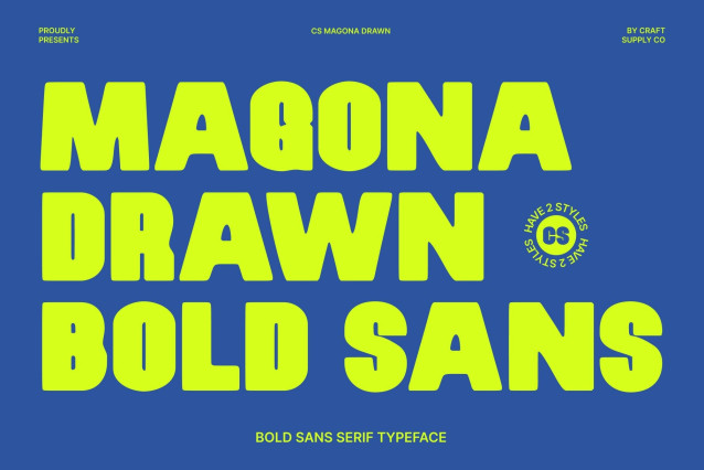CS Magona Drawn Font – This is a bold sans serif display font created to command attention with confidence. Its strong modern letterforms are enhanced by a subtle drawn effect, giving each character a unique texture and organic edge. This handcrafted nuance adds energy and personality, transforming clean geometry into expressive, eye-catching typography.