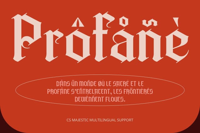 CS Majestic Font – Blackletter Font is a stunning display typeface that draws inspiration from medieval manuscripts, bringing a sense of history and formality to your design. With its thick, sharp strokes and intricate letterforms, this font channels the bold, dramatic look of traditional blackletter typography. The font’s angular corners, complex shapes, and rich decorative details make it a powerful choice for designs that need to convey a sense of authority, elegance, and historical authenticity.