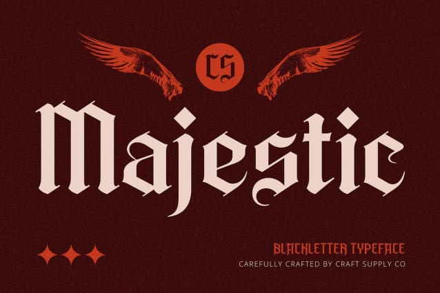 This font is made for personal use. Get the full version of the fonts if you want to use it for commercial purposes by purchasing the licenses here: https://creativemarket.com/craftsupplyco/289454376-CS-Majestic-%E2%80%93-Blackletter-Font?u=fontlot123