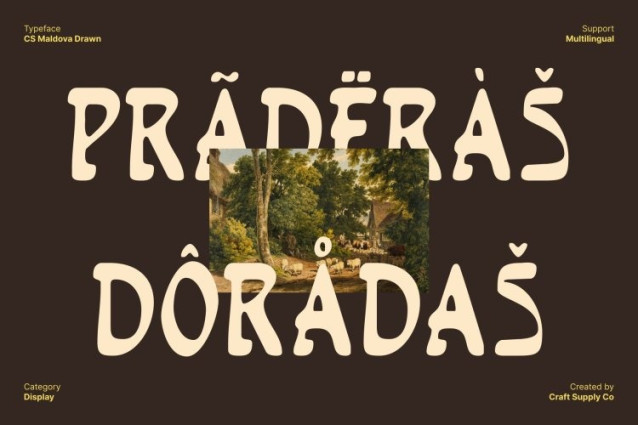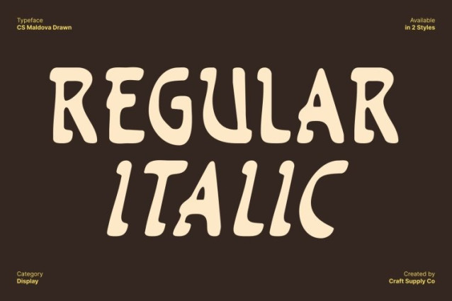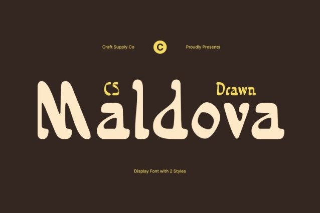 CS Maldova Drawn Font This is a vibrant serif display font that brings the groovy spirit of the 1970s into modern design. Featuring bold slab-serif curves and lively letterforms, this font delivers a fun, funky, and playful personality. Its retro influence shines through every curve, making it perfect for designers who want to inject energy, nostalgia, and character into their typography.