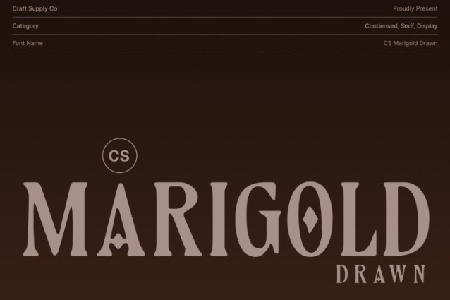 CS Marigold Drawn Font This is a Renaissance inspired typeface that captures the grandeur and refinement of historic manuscript lettering. Its flourished serifs and balanced proportions convey timeless beauty, making it ideal for designs that seek sophistication and a classical touch.