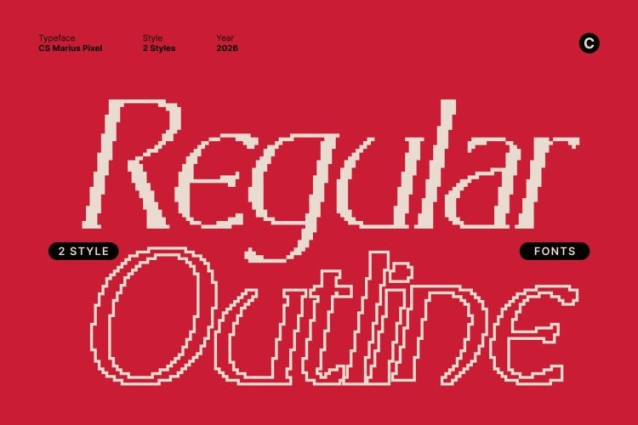 CS Marius Pixel Font This is a display serif font that combines the grandeur of Greek-inspired letterforms with subtle pixel detailing. Its bold, commanding shapes preserve classical sophistication while the pixel structure adds a contemporary digital twist, making it ideal for modern displays, screens, and branding that demand elegance with a tech-friendly edge.