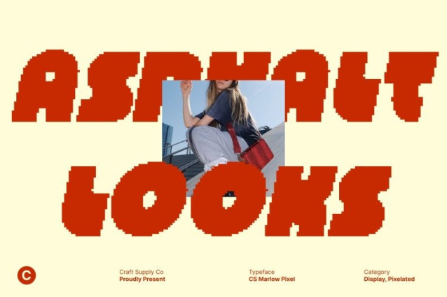 CS Marlow Pixel Font This is a bold sans serif display font built to make an instant impact. Its strong, clean shapes create a powerful visual foundation, while a touch of funky character adds a playful twist. This energetic balance makes the font perfect for designers who want clarity, punch, and personality all in one expressive typeface.