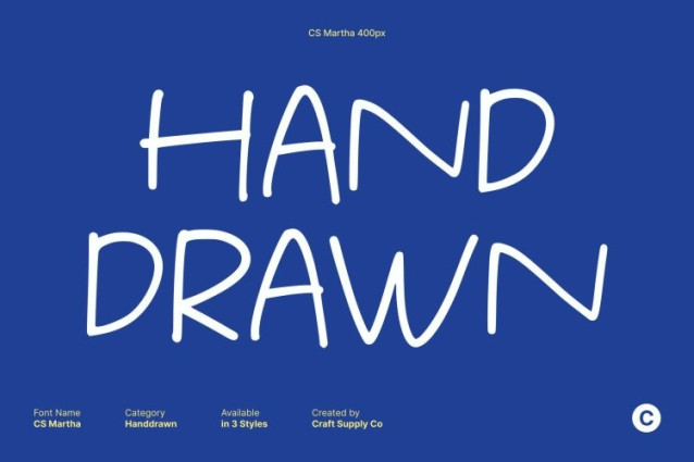 CS Martha Font This is a fun handwritten font crafted to capture the lively charm of natural pen strokes. Every letter flows with spontaneity and personality, giving your designs a warm and authentic feel. The playful movement within each character adds an inviting, human touch perfect for creative projects that need sincerity, friendliness, and expressive flair.