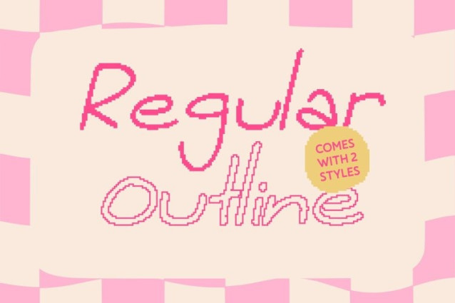 The dynamic curves and casual rhythm of this font turn simple text into an expressive visual experience. Its handwritten texture celebrates beautiful imperfection, adding emotion and character to every word. The pixel treatment adds a retro-digital twist, making the font feel eye-catching while still maintaining clarity and artistic charm.