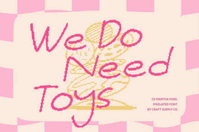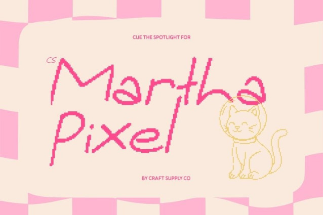 CS Martha Pixel Font This is a fun handwritten font inspired by the lively flow of natural pen strokes, enhanced with a charming pixel style. Each letter feels spontaneous and full of personality, creating a warm and authentic look that instantly connects with the viewer. The playful movement of the characters brings a friendly, human touch that feels cheerful and inviting.
