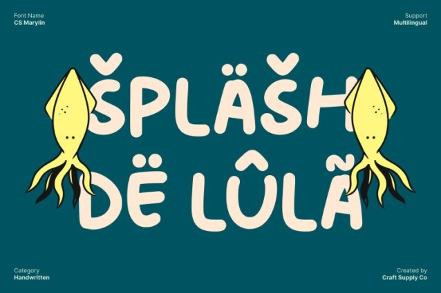 CS Marylin Font This is a cute display font designed to radiate fun, charm, and cheerful energy. Its bouncy and friendly strokes give every letter a lively, whimsical feel, creating an approachable and joyful aesthetic. This playful personality makes perfect for projects that aim to be visually engaging, fun, and full of warmth.