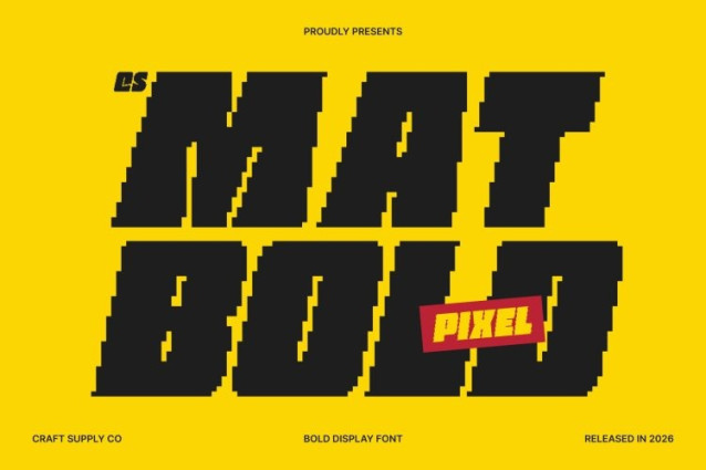 CS Matbold Pixel Font This is a bold sans serif font with thick, striking letterforms designed to capture attention instantly. Its solid construction and confident shapes convey strength, authority, and clarity, making it ideal for designs that demand high visibility and strong visual impact.