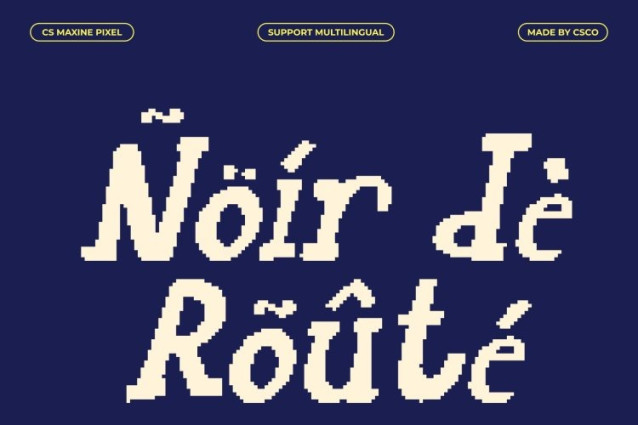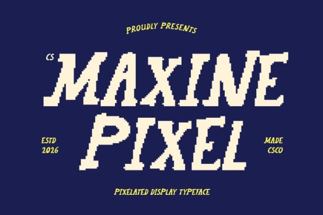 CS Maxine Pixel Font This is a playful slab serif font that blends sturdy serif structure with the warmth of handwritten forms and pixel-inspired detailing. Its naturally drawn texture, combined with digital pixel elements, creates an authentic and friendly feel that makes every word feel lively, expressive, and visually engaging.
