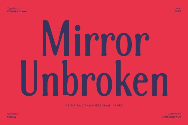 CS Meira Drawn Font This is an serif font crafted with beautifully refined curves that create a high-end, minimalist aesthetic. Inspired by Renaissance typography, it combines classical proportions with modern clarity, resulting in a typeface that feels both timeless and sophisticated. Its balanced letterforms make it ideal for designs that require elegance and subtlety.