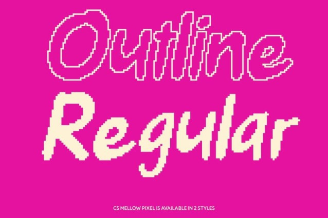CS Mellow Pixel Font This is a modern display font that blends clean handwritten forms with funky, pixel-inspired detailing. Its fluid and expressive letterforms radiate friendliness and joy, while subtle pixel structure adds a fresh digital vibe. The organic flow captures spontaneity and fun, making every design feel lively and full of personality.