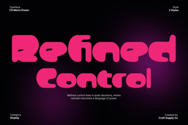 This font channels the spirit of the early 2000s, blending pop culture energy with futuristic imagination. Influenced by Y2K visuals, digital experimentation, and playful tech aesthetics, the font feels nostalgic yet forward-looking. The softened edges and funky proportions echo a time of creative freedom and optimistic futurism, making it ideal for nostalgia-driven concepts with a modern twist.