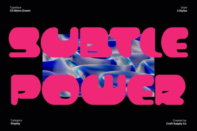 CS Metro Drawn Font This is a bold Y2K-inspired display font that captures pop-futuristic vibes through playful bubble shapes and expressive hand-drawn details. Built on chunky, rounded letterforms, this typeface radiates joy, optimism, and digital nostalgia. The drawn texture adds an organic, handmade feel that enhances its personality, making the font feel lively, creative, and full of character.