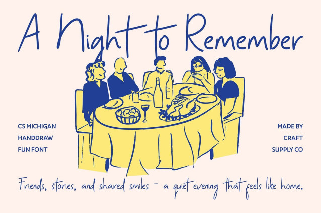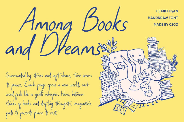 CS Michigan Font is a friendly and expressive handwritten display font that brings casual warmth to any design. Its natural, flowing strokes create a sense of authenticity and personal touch, making every word feel approachable and lively.