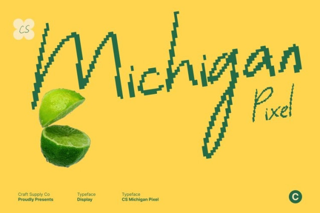 CS Michigan Pixel Font This is a friendly handwritten display font that blends natural, flowing strokes with subtle pixel-inspired details. Its casual construction brings warmth and authenticity, while the digital touch adds a fresh, contemporary feel. Every word feels personal, lively, and easy to connect with.