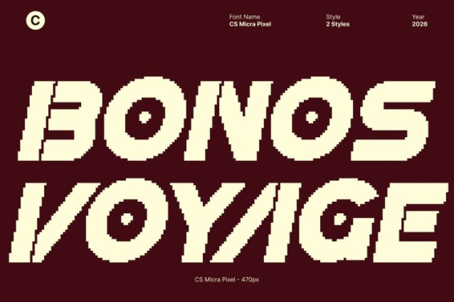 CS Micra Pixel Font This is a bold futuristic display font built on a strong techno foundation and enhanced with pixel-inspired construction. Combining industrial influence, clean geometry, and digital detailing, it delivers sharp, confident letterforms that feel modern, powerful, and forward-looking. Its striking appearance commands attention and communicates innovation with clarity.