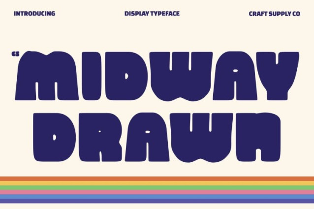 CS Midway Drawn Font This is a modern sans serif display font built with bold, clean letterforms and a lively hand-drawn texture. Its solid construction delivers strong visual impact, while the drawn details introduce a playful, organic edge that feels expressive, fresh, and full of personality.