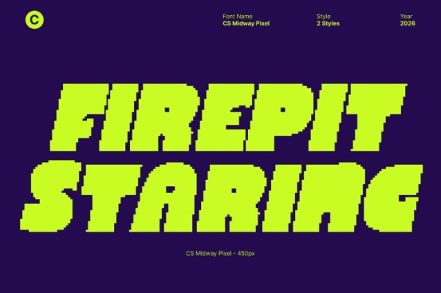 CS Midway Pixel Font This is a modern sans serif display font featuring bold, solid letterforms enhanced with pixel-inspired construction. Its clean structure delivers instant impact, while funky digital details inject energy, freshness, and creative confidence into every word.