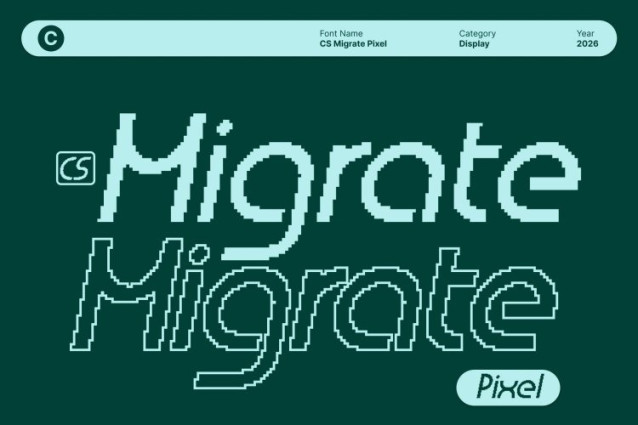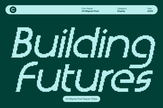CS Migrate Pixel Font This is a modern display font inspired by Bauhaus principles of clarity, function, and geometric beauty, enhanced with pixel-based construction. Built from clean shapes, modular grids, and digital precision, this typeface delivers a structured and contemporary look that feels artistic, rational, and visually strong. It reflects modernist ideals through a distinctly digital lens.