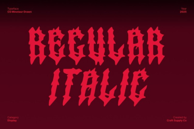 CS Minotaur Drawn Font This is a raw and aggressive black metal display font crafted to embody the ferocity of extreme music. Defined by jagged spikes, chaotic strokes, and untamed character, this typeface radiates darkness, intensity, and raw power.