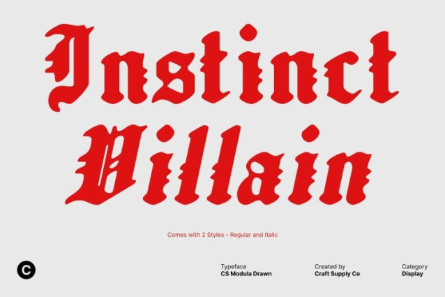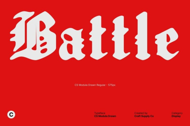 CS Modula Drawn Font This is a striking display font rooted in the grandeur of traditional Old English typography. Its bold, decorative letters are crafted with rich ornamentation, capturing the timeless beauty and historical elegance of medieval script. Each character carries a sense of tradition, authority, and mystique, making the font instantly impactful in any design.