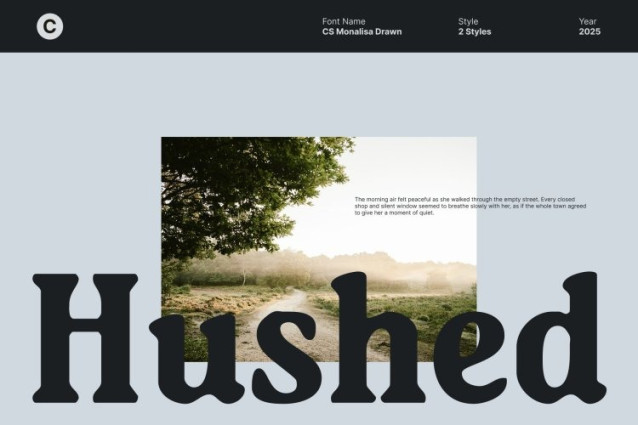 CS Monalisa Drawn Font This is a beautifully crafted serif font that combines classic letterforms with a contemporary, relaxed personality. Its clean, balanced serifs convey sophistication while maintaining approachability, making it a perfect choice for designs that want to appear stylish yet inviting.