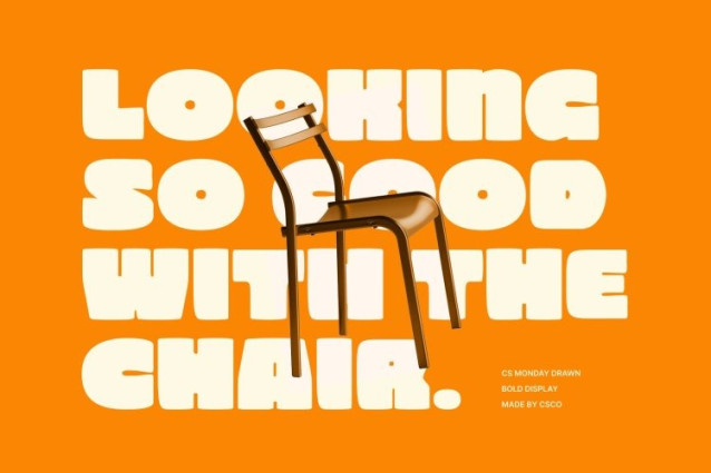 CS Monday Drawn Font This is a modern sans-serif display font defined by bold weight, clean shapes, and a contemporary structure. Its solid letterforms deliver clarity and strength, while the subtle hand-drawn texture adds expressive character, giving the font a lively and approachable feel.