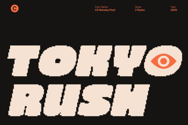 CS Monday Pixel Font This is a modern sans serif font defined by bold weight, clean construction, and pixel-inspired structure. Its strong, blocky letterforms deliver instant clarity and impact, while the pixel treatment introduces a digital edge reminiscent of classic screen typography and old-school technology. The result is a font that feels solid, modern, and unmistakably eye-catching.