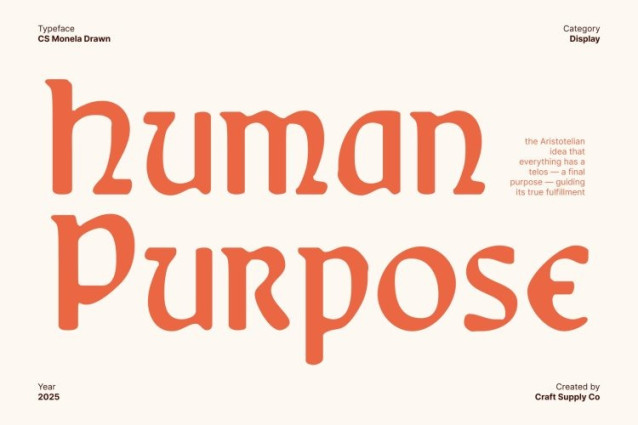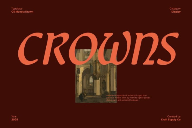 CS Monela Drawn Font This font merges the elegance of historic uncial display letterforms with a modern design approach. Its balanced, rounded shapes evoke classical scripts while maintaining a fresh and contemporary feel. The result is a typeface that honors tradition but feels relevant and stylish for today’s design projects.