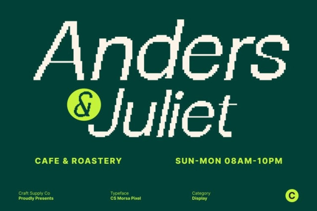 CS Morsa Pixel Font This is a modern sans serif font designed with a hybrid pixel approach that blends clean structure with contemporary digital style. Its carefully balanced construction delivers a professional appearance while the pixel-based execution adds a modern, screen-ready character. The result is a typeface that feels confident, refined, and perfectly suited for today’s digital environments.