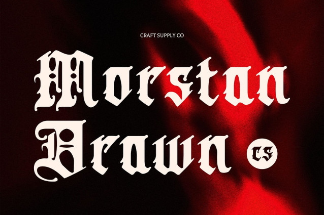 CS Morstan Drawn Font – This font showcases a classic Old English style with bold, decorative letters. Its intricate shapes and flourishes create a striking visual presence, perfect for designs that demand attention and convey traditional sophistication.