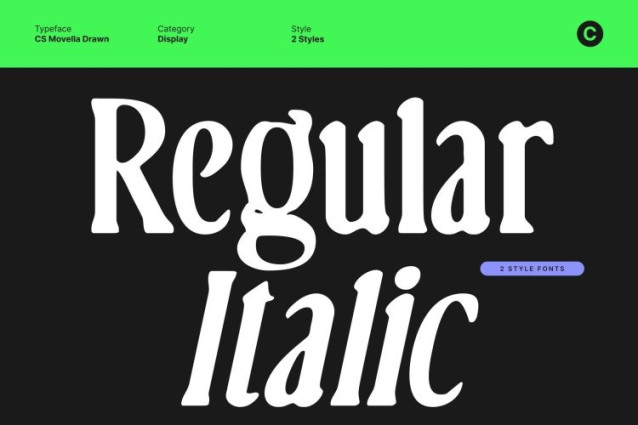 CS Movella Drawn Font This is a sophisticated serif font defined by refined curves and elegant elongated details. Its graceful proportions create a high-end visual character that feels luxurious, poised, and timeless. Each letterform is carefully shaped to convey elegance and confidence, making the font ideal for designs that demand visual prestige and refined aesthetics.