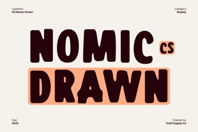 CS Nomic Drawn Font This font brings a lively sans serif, hand-drawn energy to your projects. Its playful shapes and colorful cartoon-inspired style create an engaging, cheerful atmosphere that captures attention instantly, making every design feel dynamic and full of personality.