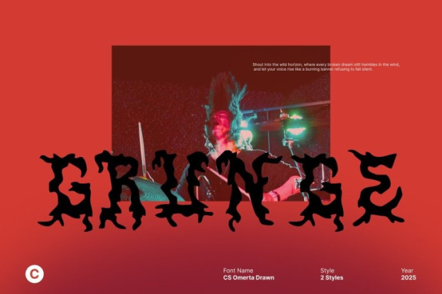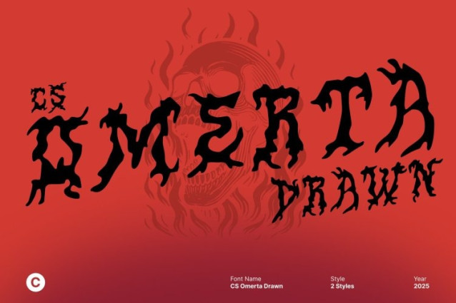 CS Omerta Drawn Font – Raw and aggressive, this black metal display font features jagged spikes and chaotic strokes that radiate darkness and extreme energy. Its distorted shapes feel untamed and rebellious, perfectly capturing the harsh visual language of extreme music and underground culture. Every character delivers a powerful, uncompromising presence that demands attention.