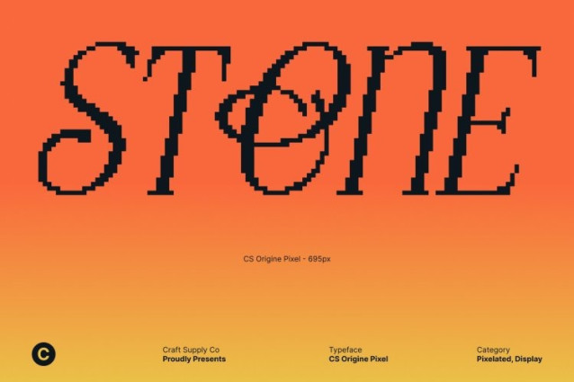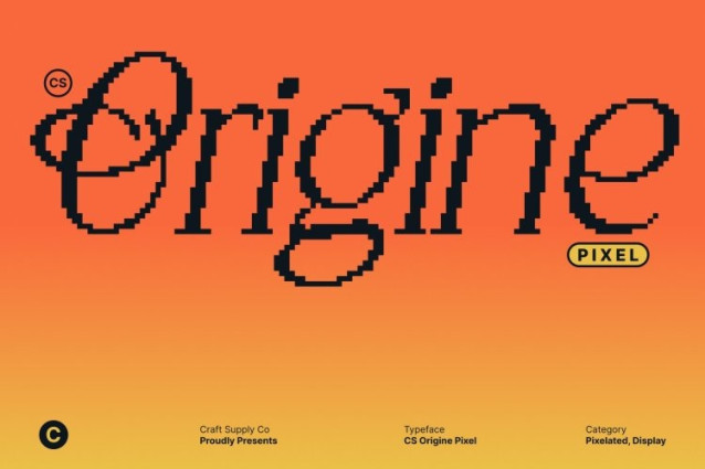 CS Origine Pixel Font This font refines the original font’s exotic serif beauty into a structured pixel-based design. Its graceful curves and sculpted details are translated into crisp, blocky forms, preserving sophistication while adding a distinctive digital presence. The result is a font that feels luxurious yet unmistakably tech-inspired.