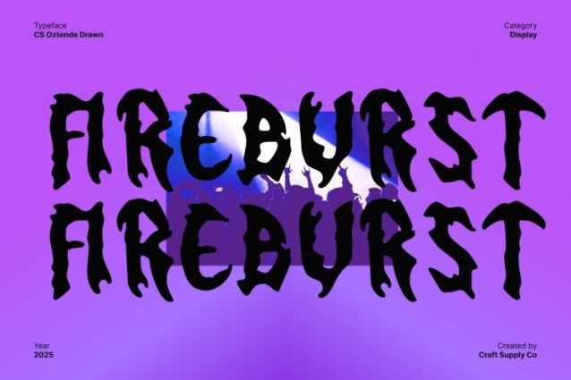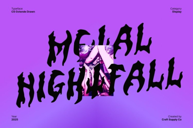 CS Oztende Drawn Font Raw and aggressive, this black metal display font features sharp, jagged spikes and chaotic strokes that convey darkness, power, and intensity. Its bold, extreme shapes create a visual presence that perfectly reflects the energy and attitude of heavy and extreme music genres.