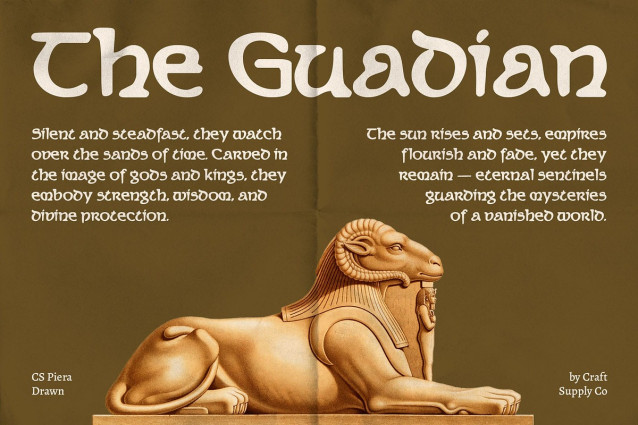 CS Piera Drawn Font is a display font featuring classic uncial forms, inspired by ancient manuscripts. Its curved, historical letterforms evoke authority, tradition, and timeless elegance, making it ideal for designs that honor classical aesthetics.