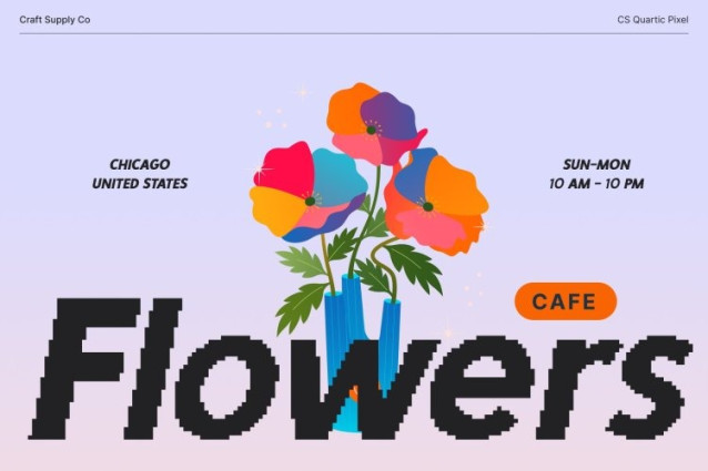 This is made for creatives who aren’t afraid to stand out. Its strong sans serif foundation anchors layouts with authority, while its expressive pixel details add movement and attitude. The result is a typeface that delivers messages with confidence, originality, and unmistakable modern style.