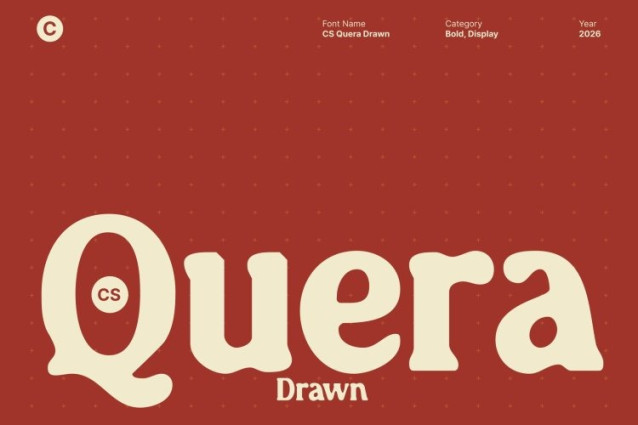CS Quera Drawn Font This is a bold serif display font crafted to grab attention with confidence. Its thick, assertive letterforms deliver a strong visual impact, while the drawn effect adds subtle personality and texture, giving the font a lively, handcrafted feel that enhances its boldness.