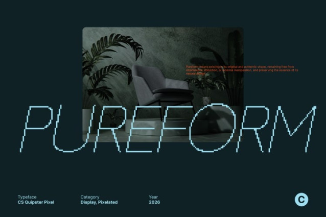 CS Quipster Pixel Font This is a thin geometric sans serif font built on a clean pixel structure. Its slender letterforms emphasize precision, balance, and elegance, delivering a refined minimalist aesthetic that feels modern, professional, and digitally crisp.