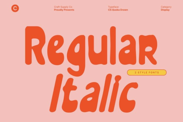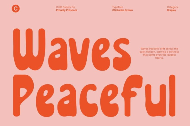 CS Quoka Drawn Font This groovy display font features retro-inspired shapes that radiate energy and playfulness. Its bold curves and dynamic forms create a funky, lively aesthetic, perfect for designs that aim to capture joy, movement, and a vintage groove.