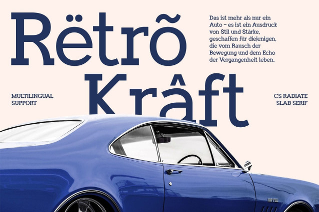 CS Radiate Font is a bold slab serif font designed to convey strength and authority. Its thick serifs and geometric proportions create a commanding presence that instantly draws attention. Perfect for modern designers seeking a typeface that embodies both power and precision.