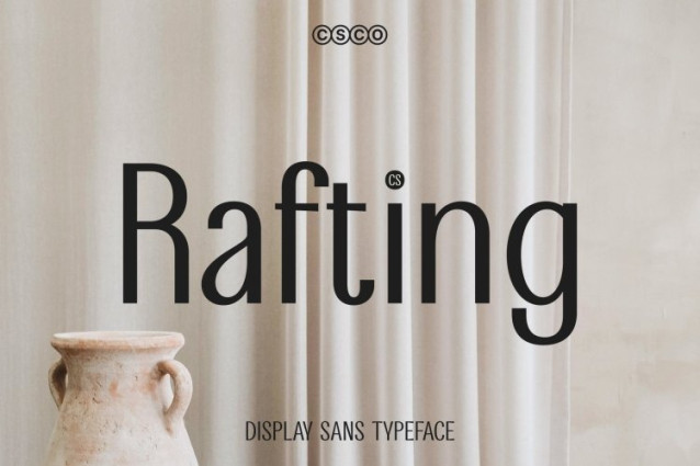 CS Rafting Font This is a modern sans serif font designed to communicate confidence through clean structure and strong proportions. Its clear construction and balanced weight give the typeface a solid, professional presence, making it highly effective for contemporary visual communication. The overall design feels assertive yet refined, allowing it to stand out without appearing aggressive.