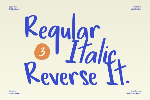 CS Railway Font This is a marker-style sans serif font that captures the warmth and spontaneity of natural handwriting. Its strokes flow with ease, mimicking the look of hand-drawn letters created with a soft, expressive marker. This organic feel adds character and emotional depth, making every word feel more personal, approachable, and full of life.