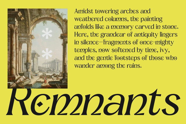 Perfect for Luxury and Cultural Projects CS Ravella thrives in projects where refinement and tradition are key. From luxury branding and packaging to cultural exhibitions and editorial layouts, it brings depth and authenticity. Its historic qualities add gravitas, while its elegant personality ensures a polished and professional result.